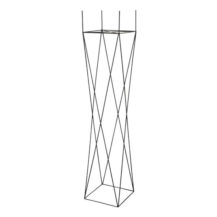 Informations Techniques : Dimensions : L. 30 x l. 30 x H. 145 cm Matière : Métal Spécificités : Tendance & Moderne Cache-Pot Design Sur Pied Support en forme de Croix Forme Carrée Poids : 3 kg Couleur : Noir