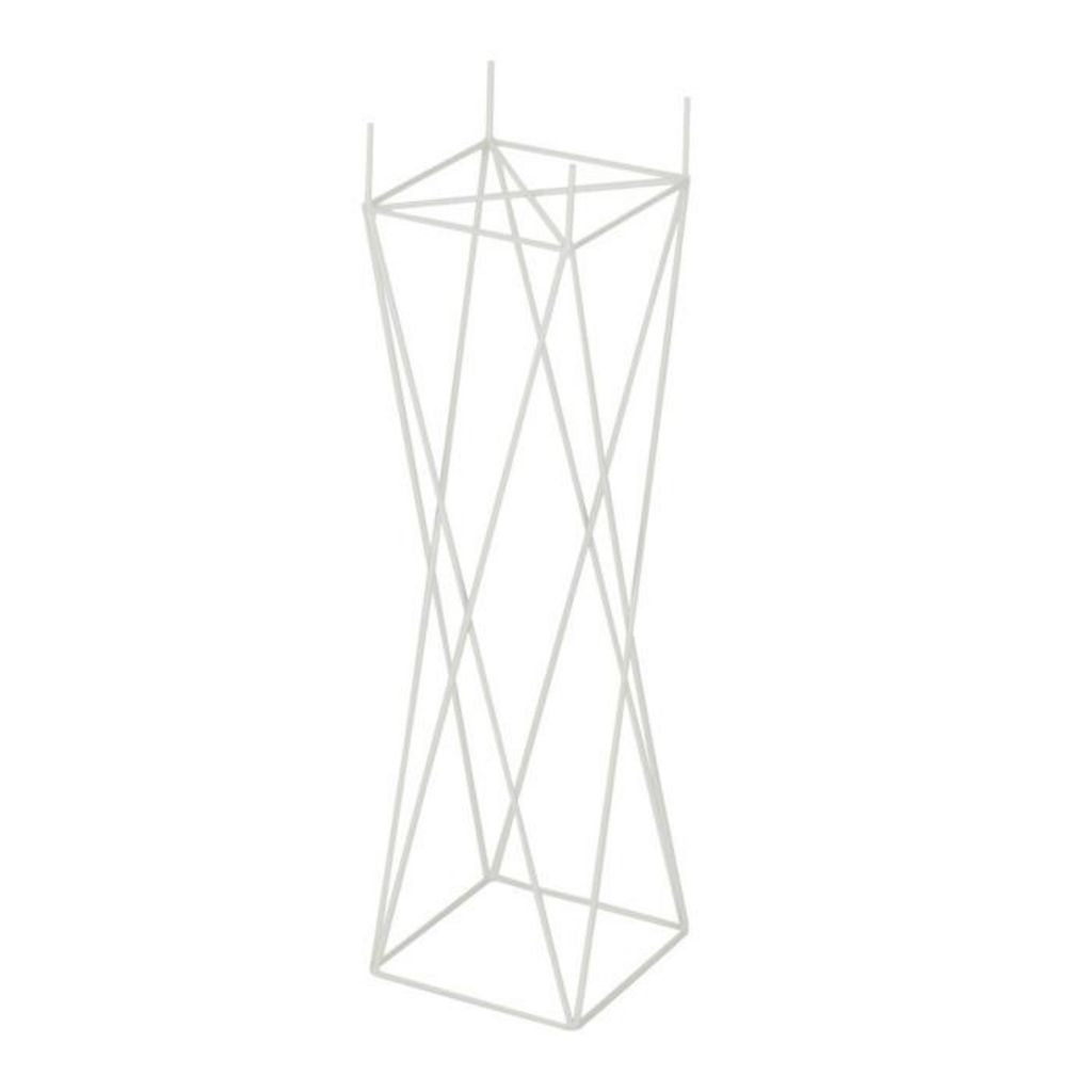 Informations Techniques : Dimensions : L. 15 x l. 15 x H. 55 cm Matière : Métal Spécificités : Tendance & Moderne Cache-Pot Design Sur Pied Support en forme de Croix Forme Carrée Poids : 0,7 kg Couleur : Blanc