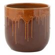 Informations Techniques : Dimensions : D. 28 x H. 26 cm Matière : Terre Cuite Spécificités : Déco & Original Cache-pot rond Design effet coulant Finition brillante Vendu à l'unité Poids : 6,05 kg Couleur : Marron & Orange