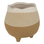 Informations Techniques : Dimensions : L. 18,5 x l. 18,5 x H. 18 cm Matière : 100% Grès Spécificités : Déco & Tendance Cache-pot sur pied Design tricolore Vendu à l'unité Poids : 1,33 kg Couleur : Beige & Marron Clair