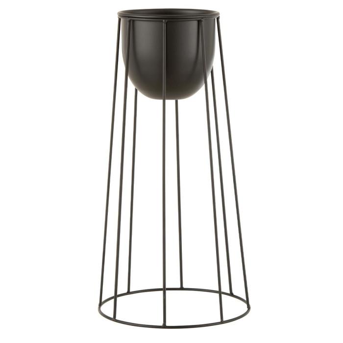 Cache-Pot sur Pied en Métal Lignes 45cm Noir