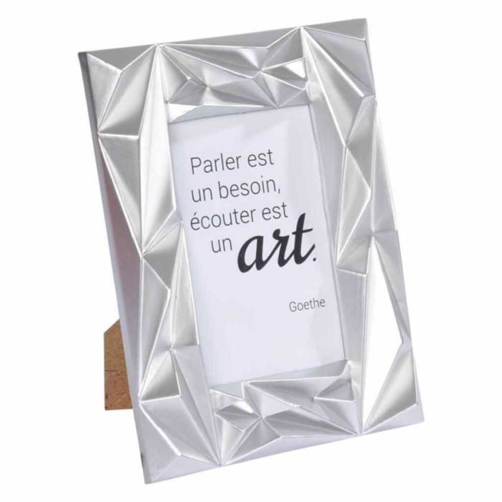 Informations Techniques : Dimensions : L. 13 x H. 18 cm Matière : Plastique Spécifictés : Tendance & Moderne Cadre Porte Photo Déco Élément à Poser Forme Rectangulaire Couleur : Argent