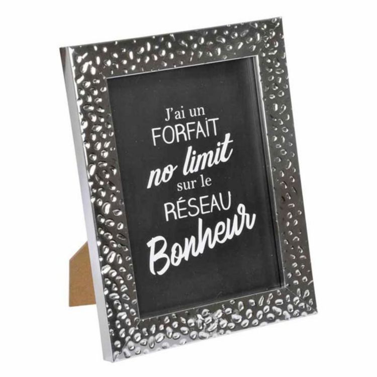 Informations Techniques : Dimensions : L. 13 x H. 18 cm Matière : Plastique Spécifictés : Tendance & Moderne Cadre Porte Photo Déco Élément à Poser Forme Rectangulaire Couleur : Argent