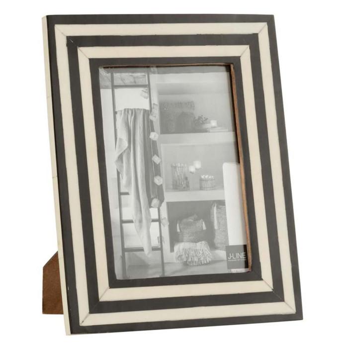 Informations Techniques : Dimensions : L. 19 x l. 10,5 x H. 24 cm Matière : Résine Spécificités : Pratique & Utile Cadre Photo Déco A Poser Forme Rectangulaire Effet Ligné Poids : 0,44 kg Couleur : Noir & Blanc