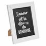 Informations Techniques : Dimensions : L. 18 x H. 24 cm Matière : Plastique Spécifictés : Tendance & Moderne Cadre Porte Photo Déco Forme Rectangulaire Couleur : Blanc
