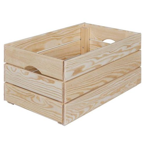 Informations Techniques : Dimensions : L. 65 x l. 31,5 x H 23 cm Matière : Bois massif Spécificités : Pratique & astucieux Cagette de rangement Avec 2 poignées Forme rectangulaire Poids : 4,11 kg Couleur : Naturel