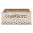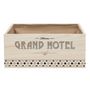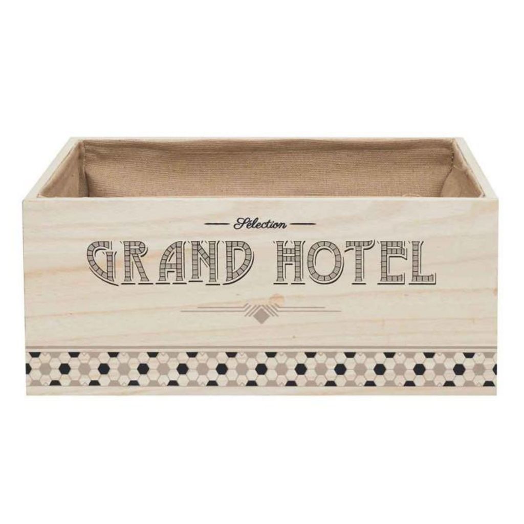 Informations Techniques : Dimensions : L. 32,5 x l. 19 x H. 12,9 cm Matières : Bois (Paulownia), Métal & Zinc Spécificités : Pratique & Utile Cagette pour Pain & Viennoiseries Forme Rectangulaire Inscription Grand Hôtel Poids : 0,45 kg Couleur : Naturel