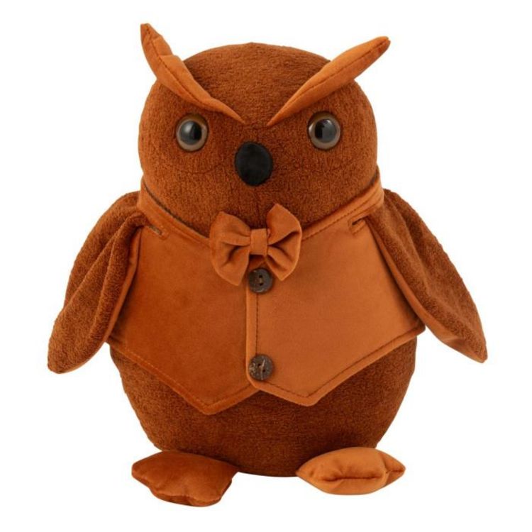 Cale-Porte en Velours Bouclé Chouette 28cm Cognac