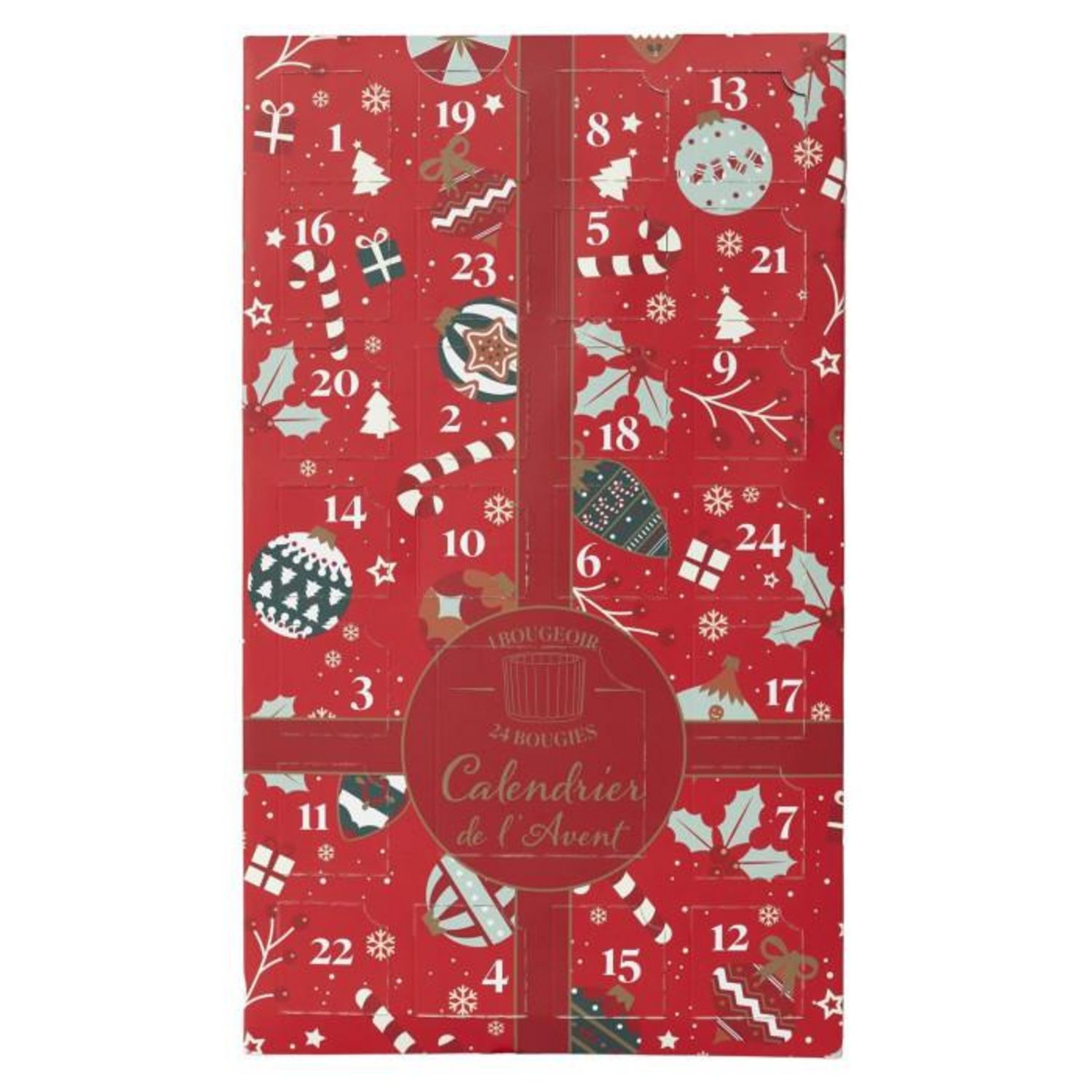 Calendrier de l'Avent 24 Bougies Parfumées & Photophore Noël 37cm Rouge