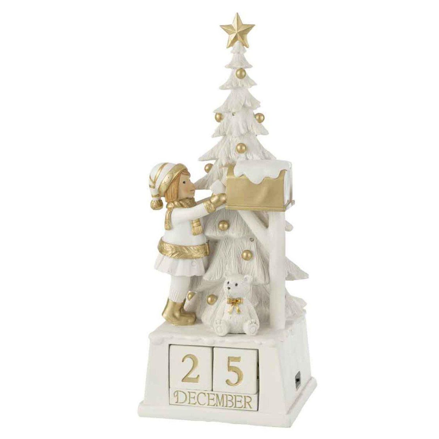 Calendrier Déco Sapin de Noël 49cm Blanc & Or