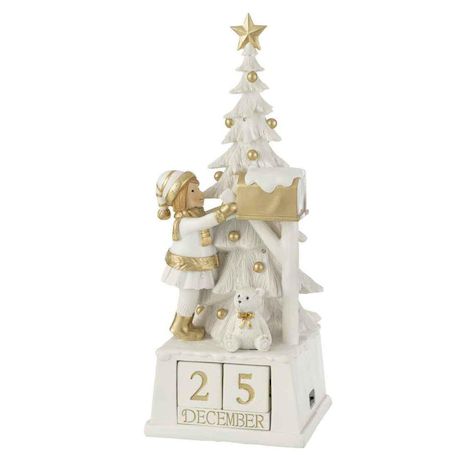 Informations Techniques : Dimensions : L. 18,5 x l. 18 x H. 49,5 cm Matière : Résine Spécificités : Pratique & Utile Calendrier Déco A Poser Design Sapin de Noël Poids : 2,84 kg Couleur : Blanc & Or