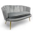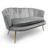 Informations Techniques : Dimensions : L. 138 x l. 76 x H. 80 cm Matières : Revêtement : Velours Piètement : Métal Spécificités : Tendance & Moderne Canapé 2 Places Design Coquillage Assise Confortable À monter soi-même Nombre de colis : 1 Poids : 23 kg Couleur : Argent