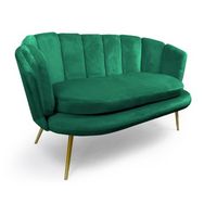 Informations Techniques : Dimensions : L. 138 x l. 76 x H. 80 cm Matières : Revêtement : Velours Piètement : Métal Spécificités : Tendance & Moderne Canapé 2 Places Design Coquillage Assise Confortable À monter soi-même Nombre de colis : 1 Poids : 23 kg Couleur : Vert