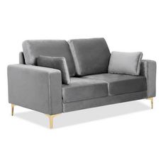 Informations Techniques : Dimensions : L. 158 x l. 92 x H. 90 cm Matières : Revêtement : Velours Piètement : Métal Spécificités : Doux & Chic Canapé droit 2 places Dossier avec 2 coussins 2 coussins déco inclus Nombre de colis : 1 Poids : 45 kg Couleur : Gris