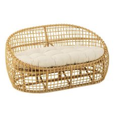 Informations Techniques : Dimensions : L. 137 x l. 84 x H. 67 cm Assise : l. 62 x H. 30 cm Matières : Rotin, Coton & Polyester Spécificités : Tendance & Déco Canapé 2 places Avec coussin Poids max supporté : 250 kg Poids : 16 kg Couleur : Naturel