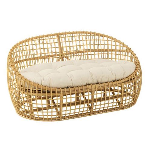 Canapé 2 Places Rotin & Coussin Lise 137cm Naturel