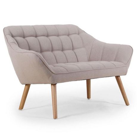 Informations Techniques : Dimensions : L. 128 x P. 83 x H. 70 cm Matière : Tissu & Bois Spécificités : Design & Elegant Canapé 2 places Design Scandinave Assise matelassée Nombre de colis : 1 Couleur : Beige