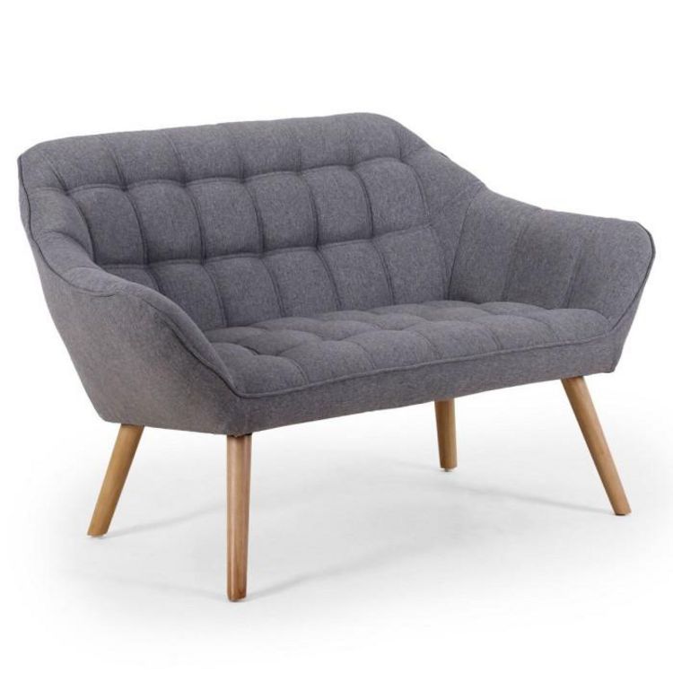 Informations Techniques : Dimensions : L. 128 x P. 83 x H. 70 cm Matière : Tissu & Bois Spécificités : Design & Elegant Canapé 2 places Design Scandinave Assise matelassée Nombre de colis : 1 Couleur : Gris