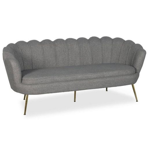 Informations Techniques : Dimensions : L. 181 x l. 76 x H. 77,5 cm Matières : Revêtement : Tissu Structure : Bois Piètement : Métal Spécificités : Confortable & Élégant Canapé 3 places Design coquillage Assise confortable Nombre de colis : 1 Poids : 29 kg Couleur : Gris