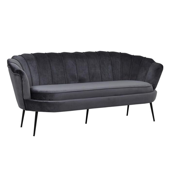 Informations Techniques : Dimensions : L. 180 x l. 78 x H. 78,5 cm Assise : L. 151 x l. 56 x H. 46 cm Accoudoirs : l. 29 x H. 66 cm Matières : Revêtement : Polyester Piètement : Acier Spécificités : Original & Élégant Canapé droit 3 places Design coquillage Tissu velours Nombre de colis : 1 Poids