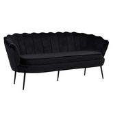 Informations Techniques : Dimensions : L. 180 x l. 78 x H. 78,5 cm Assise : L. 151 x l. 56 x H. 46 cm Accoudoirs : l. 29 x H. 66 cm Matières : Revêtement : Polyester Piètement : Acier Spécificités : Original & Élégant Canapé droit 3 places Design coquillage Tissu velours Nombre de colis : 1 Poids