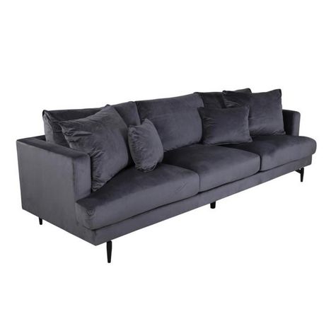 Canapé 3 Places en Velours Sofia 260cm Gris Foncé