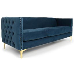 Canapé 3 Places en Velours Suez 204cm Bleu