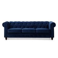 Canapé 3 Places Velours Chesterfield 209cm Bleu