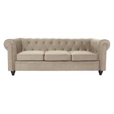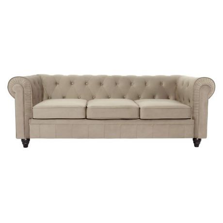 Canapé 3 Places Velours Chesterfield 209cm Taupe