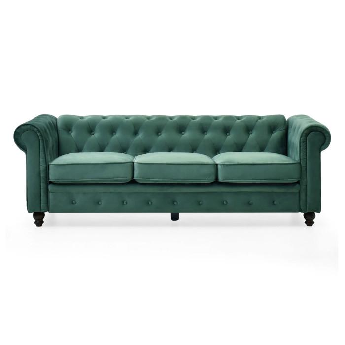 Canapé 3 Places Velours Chesterfield 209cm Vert