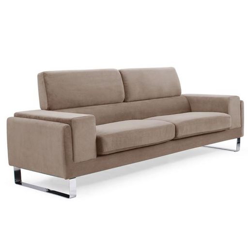 Informations Techniques : Dimensions : L. 198 x l. 80 x H. 87 cm Profondeur d'assise : 52 cm Matières : Velours & Métal Spécificités : Moderne & Épuré Canapé 3 places Design effet côtelé Pieds en métal Livré monté Facile d'entretien & d'utilisation Nombre de colis : 1 Couleur : Taupe