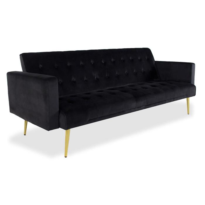 Canapé Convertible Velours Tybio 191cm Noir