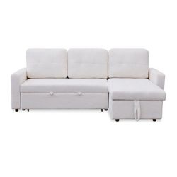 Canapé d'Angle Convertible Bouclette Corto 221cm Crème