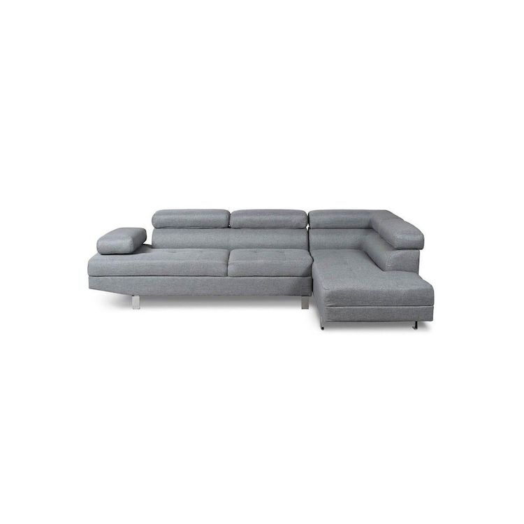 Canapé d'Angle Droit en Tissu Têtière 260cm Gris