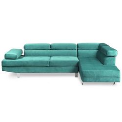 Informations Techniques : Dimensions : L. 260 x l. 163 x H. 72 cm Matière : Velours & Métal Spécificités : Moderne & Design Canapé d'angle avec têtières relevables Pouvant accueillir jusqu'à 5 places assises À monter soi-même Nombre de colis : 2 Couleur : Vert