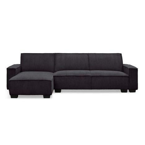 Informations Techniques : Dimensions : L. 293 x l. 142 x H. 82 cm Matière : Velours Spécificités : Doux & Confortable Canapé d'angle 5 places Convertible Angle réversible Dossiers rabattables Velours côtelé Poids : 77 kg Couleur : Noir