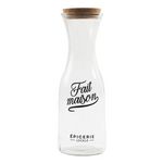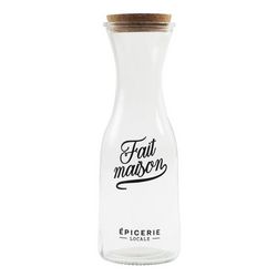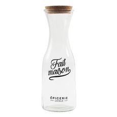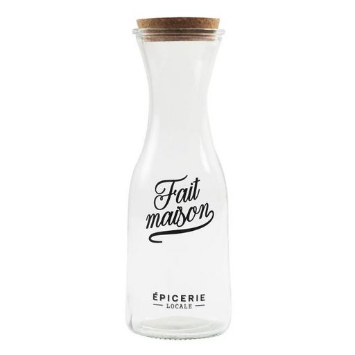 Informations Techniques : Dimensions : L. 27,5 x l. 8,5 cm Matières : Verre & Liège Spécificités : Tendance & Utile Carafe Design Forme Ronde Inscription Fait Maison Couvercle en Liège Style Vintage & Industriel Poids : 0,668 kg Couleur : Transparent