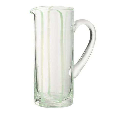 Informations Techniques : Dimensions : L. 18 x l. 10 x H. 25 cm Matière : 100% Verre Spécificités : Élégante & Colorée Carafe design Imprimé à rayures Usage intérieur/extérieur Vendue à l'unité Compatibilité : Lave-vaisselle Poids : 0,9 kg Couleur : Vert & Transparent