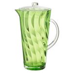 Informations Techniques : Dimensions : L. 14 x l. 14 x H. 27 cm Matière : 100% Plastique Spécificités : Élégante & Robuste Carafe avec couvercle Motif vague Compatible lave-vaisselle Capacité : 2,326 L Poids : 0,71 kg Couleur : Vert Foncé
