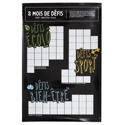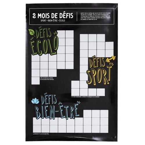 Informations Techniques : Dimensions : L. 40 x l. 60 cm Matière : Papier Spécificités : Pratique & Utile Carte à Gratter 2 mois de Défis Forme Rectangulaire Facile d'entretien & d'utilisation Couleur : Noir