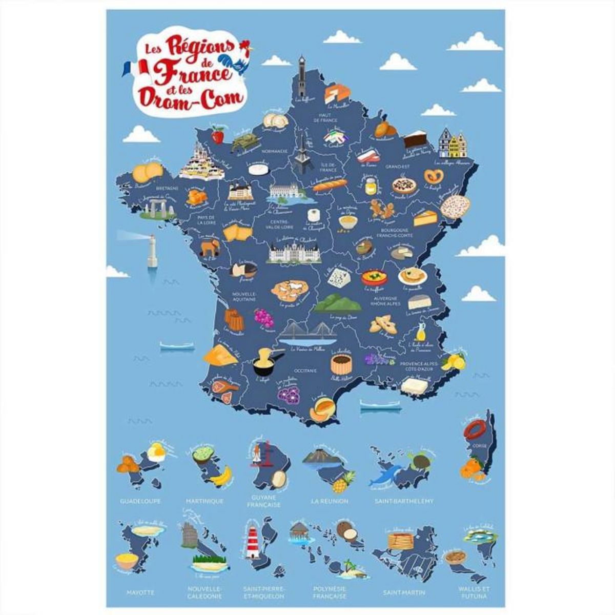 Carte à Gratter Régions de France 70cm Bleu