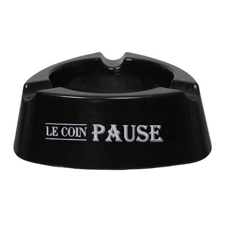Informations Techniques : Dimensions : L. 12 x H. 3,5 cm Matière : 100% Plastique Spécificités : Pratique & Léger Cendrier triangle Avec 3 encoches Inscription Le coin pause Poids : 0,06 kg Couleur : Noir