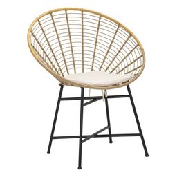 Informations Techniques : Dimensions : L. 72 x l. 56,5 x H. 88 cm Matières : Chaise : Métal, Rotin & Plastique Coussin : Polyester & Éponge Spécificités : Tendance & Confort Chaise design ajouré Avec un coussin Dossier avec des détails en rotin Structure en métal Piètement à assembler soi-même Poid