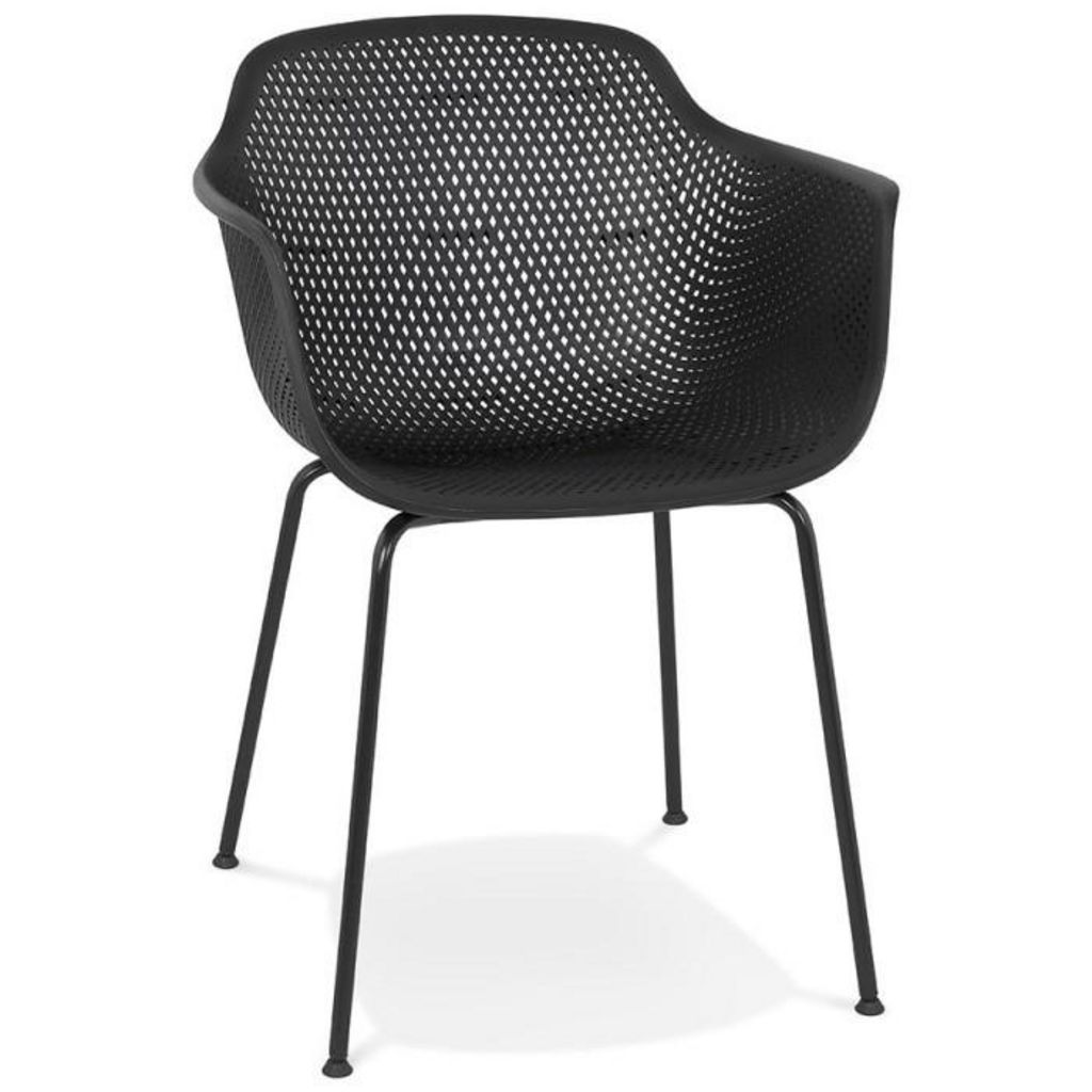Informations Techniques : Dimensions : L. 54,5 x l. 59,5 x H. 81 cm Assise : L. 46,5 x l. 54 x H. 46 cm Dossier : L. 46,5 x H. 35 cm Accoudoir : H. 25 cm Matières : Plastique & Polymère Spécificités : Chic & Tendance Chaise Design Assise Confortable Avec Accoudoirs Dessin Ajouré inspiré de la secon
