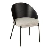 Informations Techniques : Dimensions : L. 53,5 x l. 54,2 x H. 74,6 cm Assise : H. 45,6 cm Matières : 40% Bois (Contreplaqué), 40% Métal & 20% Polyester Spécificités : Élégante & Moderne Chaise design Dossier arrondi Poids max supporté : 150 kg Poids : 6,08 kg Couleur : Noir & Gris