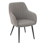 Informations Techniques : Dimensions : L. 68 x l. 65 x H. 83 cm Assise : H. 48 cm Matières : Métal, Tissu, Bois (Contreplaqué) & Mousse Spécificités : Moderne & Confortable Chaise design Avec accoudoirs À monter soi-même Poids max supporté : 100 kg Poids : 6,9 kg Couleur : Gris