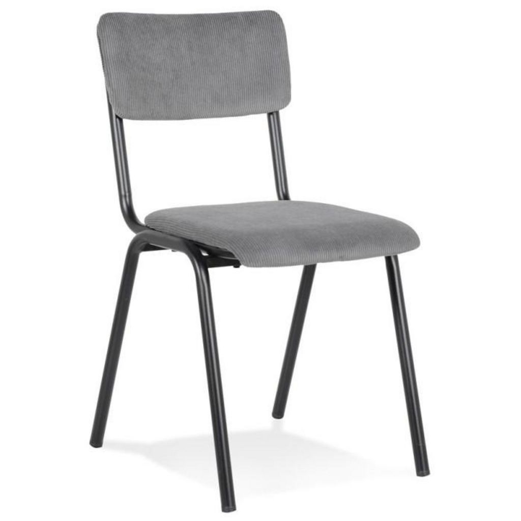 Informations Techniques : Dimensions : L. 49,5 x l. 59 x H. 83 cm Dossier : L. 41 x l. 38 cm Assise : L. 42 x l. 42 x H. 50 cm Matières : Structure : Métal Poudré Revêtement : Tissu Spécificités : Chic & Tendance Chaise Design Style Vintage & Rétro Assise Confortable Empilable Look Scolaire Revête