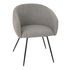Informations Techniques : Dimensions : L. 60 x l. 61 x H. 75 cm Assise : H. 50 cm Matières : Métal, Tissu, Bois (Contreplaqué) & Mousse Spécificités : Moderne & Confortable Chaise design Avec accoudoirs Design arrondi À monter soi-même Poids max supporté : 100 kg Poids : 6,33 kg Couleur : Gris
