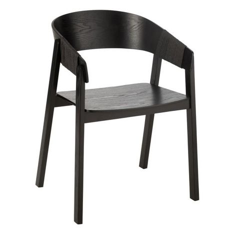 Informations Techniques : Dimensions : L. 57,1 x l. 52,8 x H. 76,8 cm Assise : H. 45,3 cm Matières : 60% Bois (Frêne), 30% Bois (Contreplaqué) & 10% Corde Spécificités : Moderne & Robuste Chaise dossier arrondi Avec accoudoirs Poids max supporté : 150 kg Poids : 4,89 kg Couleur : Noir