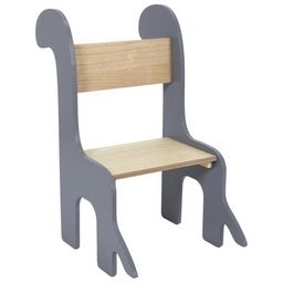 Informations Techniques : Dimensions : L. 33 x l. 49,5 x H. 60 cm Assise : H. 24 cm Matière : Bois Spécificités : Pratique & Utile Chaise enfant Design dinosaure Assise confortable Poids : 2,64 kg Couleur : Gris & Naturel
